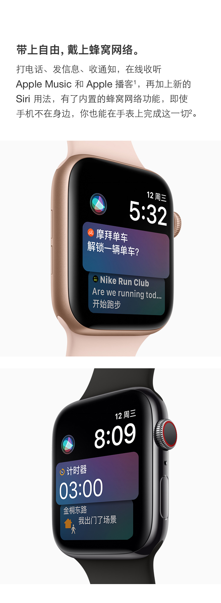 苹果 Apple Watch Series 3双核处理器,微信,Apple Music